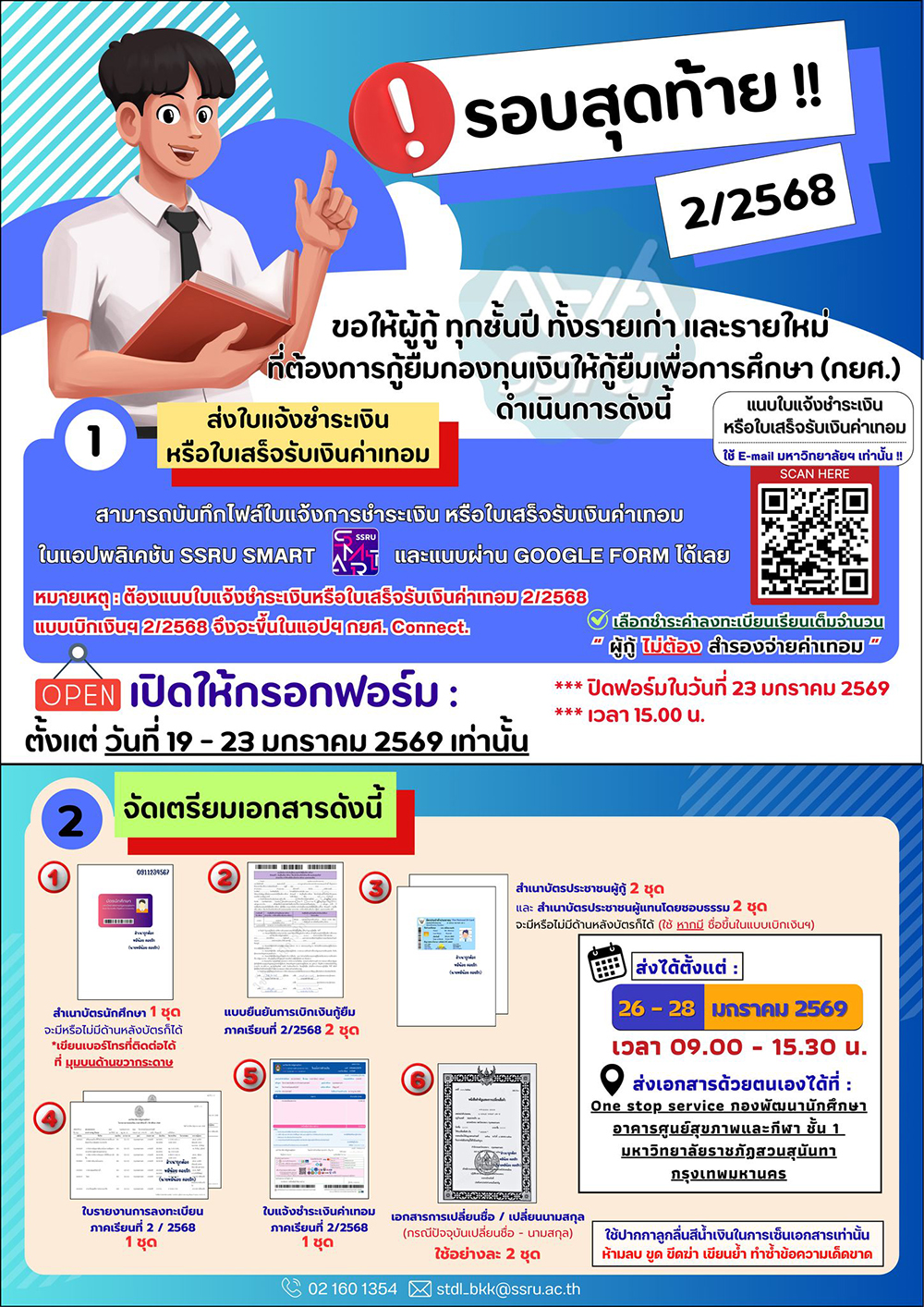 รอบสุดท้ายย‼ ผู้กู้ ทุกชั้นปี ทั้งรายเก่า และรายใหม่ ที่ต้องการกู้ยืมกองทุนเงินให้กู้ยืมเพื่อการศึกษา (กยศ.)
